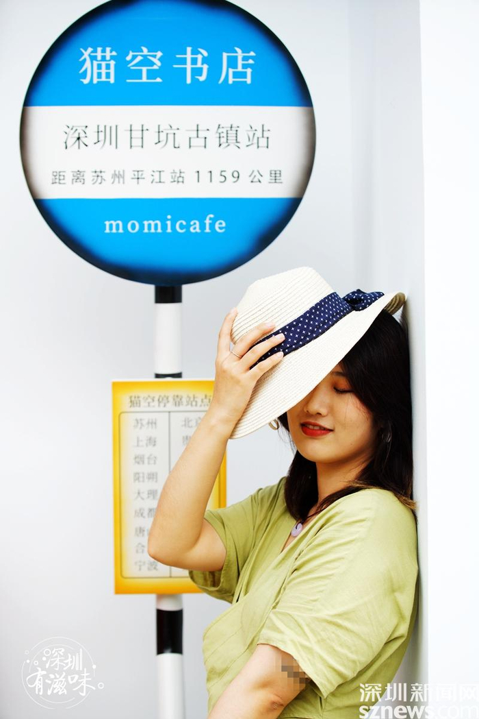 甘坑古镇的猫空书店站牌,也是一个拍照打卡的绝佳背景板。