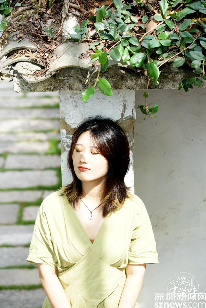 记者鹿筱悦在凤凰谷歇脚。