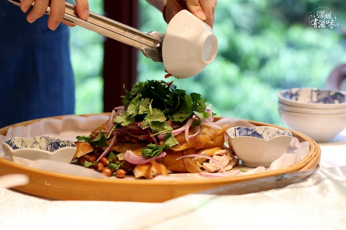 甘坑古镇的客家餐厅,提供别具特色的客家手撕鸡,食材丰富。
