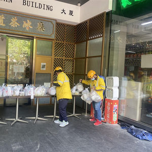 知名连锁品牌东发道茶冰厅,在上海有5家门店,目前人民广场店、五角场LAB店已恢复线上营业。东发道市场经理吴小姐表示,五角场LAB店在4月18日拿到了杨浦区市场监管局签发的保供白名单,完成对门店的消杀、员工核酸、抗原检测后,17名员工进驻到门店内,开始开工,“为了确保安全,我们的员工每天吃住在店里,做好防疫措施,外卖无接触配送,把餐品放在外面桌子上,小哥按照编号来取”。4月20日,人民广场店也拿到了黄浦区市场监管局签发的保供白名单,16名员工进驻后,这家店也全力运转起来。