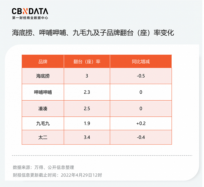 此外,在餐饮品牌中,翻台(座)率也是值得研究的一个指标: