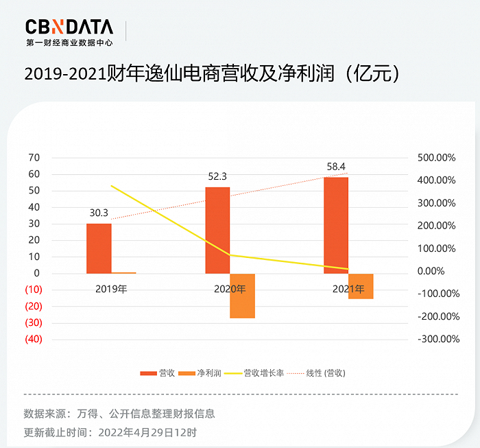 根据财报显示,2021财年逸仙电商实现营收58.4亿元人民币,较2020年同期增长11.6%;毛利率增长2.5%至66.8%;净亏损15.41亿元,同比收窄42.7%。2021年,逸仙电商整体向上发展的同时,营收增长在逐渐放缓。