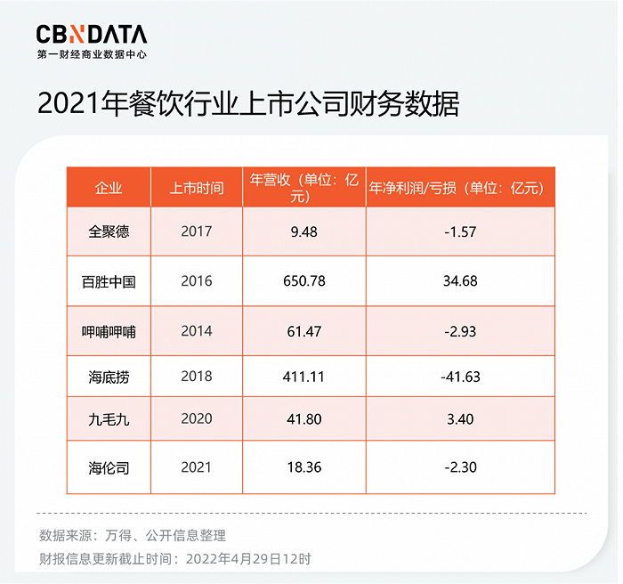 截至4月28日,已上市的10家餐饮企业中,有6家已披露财报数据,6家企业关键财务情况如下: