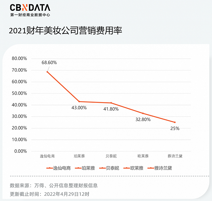 根据国泰君安提供的研报数据,逸仙电商的营销费用占比在同行中较高: