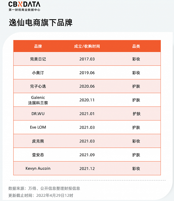 2020年逸仙电商自主孵化了护肤品牌“完子心选”,2020年11月,逸仙收购法国高端美妆品牌“Galénic”,此后又陆续收购了科兰黎、DR.WU的大陆业务等。截至目前,逸仙电商旗下已经有了完美日记、小奥汀、完子心选、Galénic法国科兰黎、DR.WU(中国大陆业务)、Eve LOM、Kevyn Aucoin、皮克熊和壹安态九大品牌,从国货到国际,从彩妆到护肤,逸仙电商覆盖了从大众到中高端的各个品类。