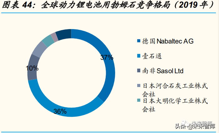 1)勃姆石:壹石通、中铝郑州研究院为国内勃姆石主要供应商,其中 壹石通在宁德时代、亿纬锂能、国轩高科勃姆石份额预计超 70%;国 内其他勃姆石生产商包括极盾新材料、国瓷材料,目前规模较小。