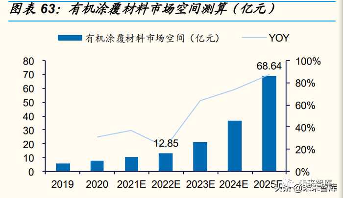 3.2 有机涂覆材料市场空间测算:2025 年近 70 亿