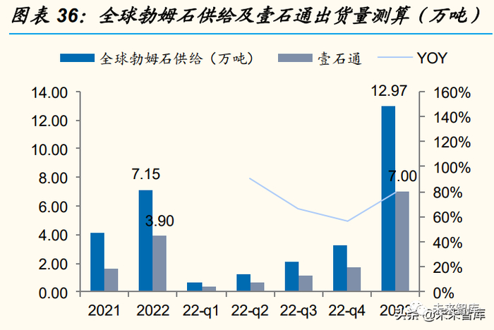 有 效 产 能 释 放 少 , 勃 姆 石 供 需 趋 紧 。根据我们的测算, 2021/2022/2023 勃姆石供需缺口(供给-需求)为-0.25/-0.18/0.29 万 吨,全球供给仅小幅超过需求;2022 年单季度供需缺口 Q1/Q2/Q3/Q4 分别为-0.02/-0.03/-0.05/-0.08 万吨,由于 2022 年全球 有效供给大部分来自于壹石通,而壹石通产能释放集中在下半年,我 们预计勃姆石将出现供不应求。