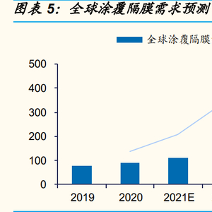 单面无机涂覆顺应主流市场需求,勃姆石最具需求弹性。随着锂电池 对能量密度要求的提高,隔膜厚度趋于轻薄化,单面无机物涂覆既可 满足涂覆膜轻薄要求又能保障电池安全性能,同时涂覆成本最低,顺 应锂电池产业链降本需求;根据我们的测算,单面无机物涂覆市场份 额预计在 60%以上。考虑到勃姆石较氧化铝在性能指标、性价比上均 存在明显优势,将对氧化铝形成替代,我们认为勃姆石是锂电池涂覆 材料中未来最具需求弹性的涂覆材料,增速预计在 60%以上。