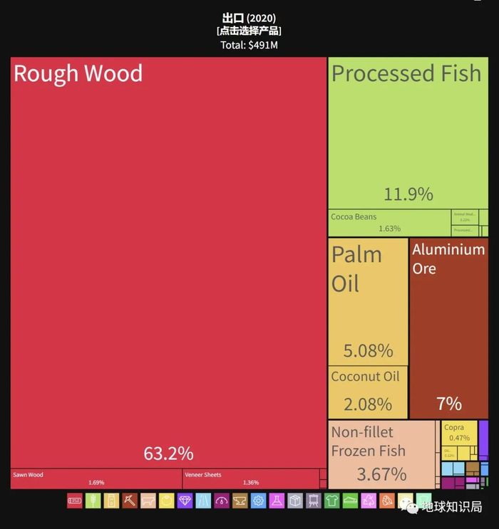 出口项则很单一,主要是木材、鱼、棕榈油(图2)