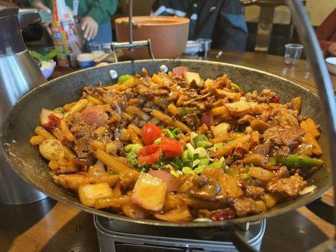 张家界人因地制宜的奇思妙想,还在另一菜品上得到了更富创意的诠释。那便是称霸夜市的土家三下锅。据说,来张家界不吃三下锅,就好比喝酸奶不舔盖,去东北不搓澡。