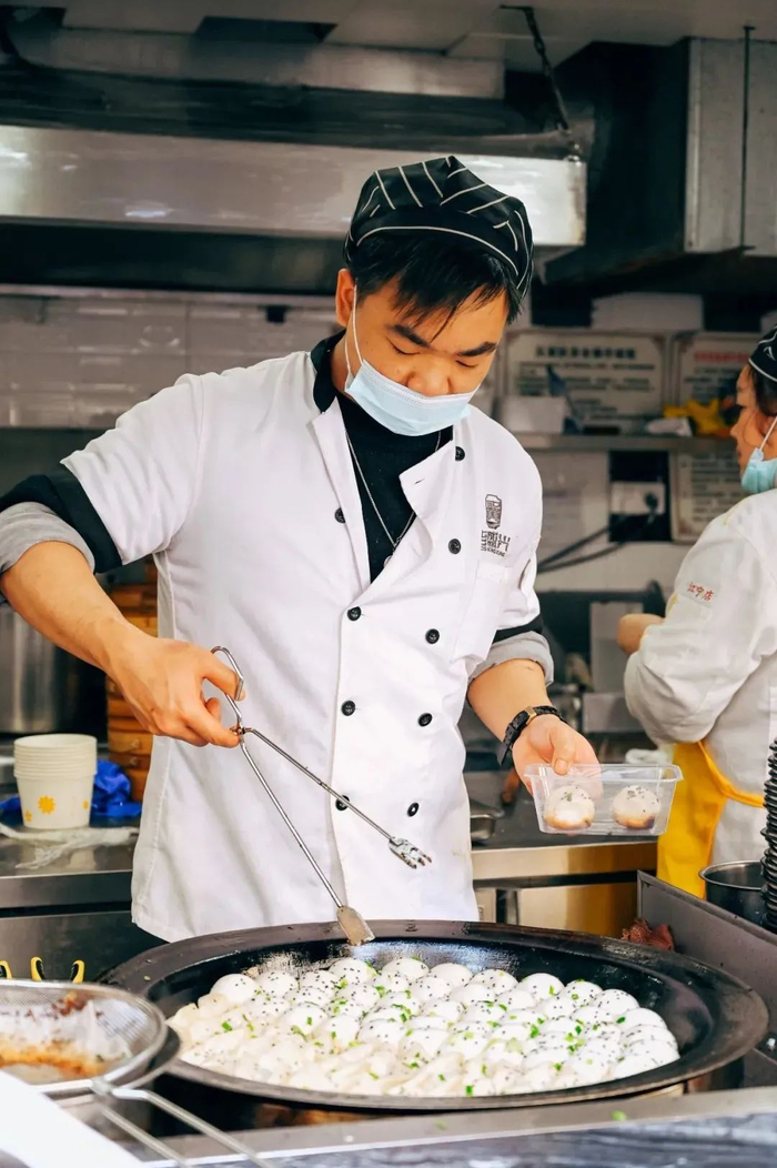 不管是永嘉路的阿大葱油饼、虹口提篮桥的老摊葱油饼或是弄堂口的任一家小店,葱油饼都是阿拉不能舍弃的美味,面皮裹挟着葱花,在炉子上滋滋作响,一口入魂!