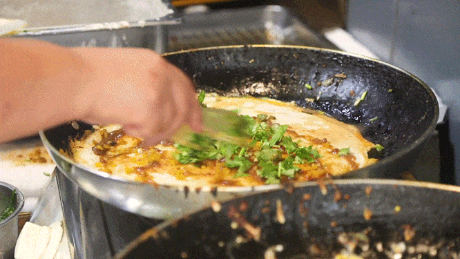 香软的蛋饼承包了上海人早餐江湖的半壁江山,面糊融合鸡蛋,包裹上油条或薄脆,一整天的满足从这口开始!