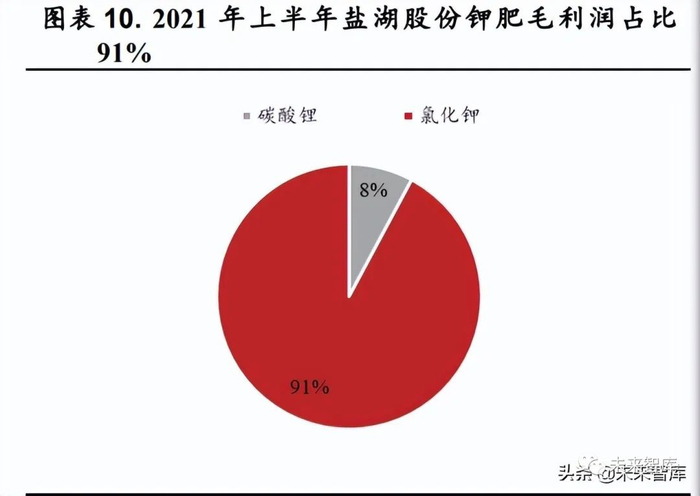 藏格矿业钾肥产能居全国第二位,依托于察尔汗盐湖公司钾锂业务双驱动。藏格矿业目前拥有氯化钾产能 200 万吨,位居全国第二位。2019-2021年公司氯化钾产量在 100-120 万吨。其中2021 年公司氯化钾产量为108万吨,销量为 107 万吨,产销稳定。公司依托察尔汗盐湖资源,发展盐湖提钾、盐湖提锂技术,生产氯化钾、碳酸锂等产品,其中2021 年公司氯化钾业务毛利润占比 73%,为公司利润的主要来源。(报告来源:未来智库)