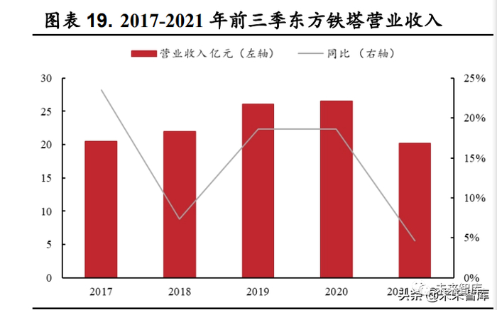 东方铁塔 2021 年前三季业绩表现较好。东方铁塔2021 年年报预计披露时间为 2022 年 4 月 22 日。虽然东方铁塔没有发布业绩预告,但根据公司 2021 年三季报数据,公司 2021 年前三季实现主营业务收入20.2亿元,同比增长 4.6%;归母净利润 3.5 亿元,同比增长51.5%;扣非净利润3.26亿元,同比增长 70.1%。公司在公告中表示,受益于下游市场需求拉动、市场价格上涨因素影响,公司钾肥业务实现持续增长,公司整体盈利水平较去年同期有较大幅度提升。