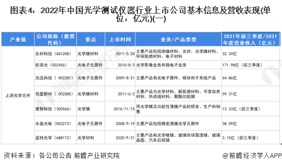 【最全】2022年光学测试仪器行业上市公司全方位对比(附业务布局汇总、业绩对比、业务规划等)