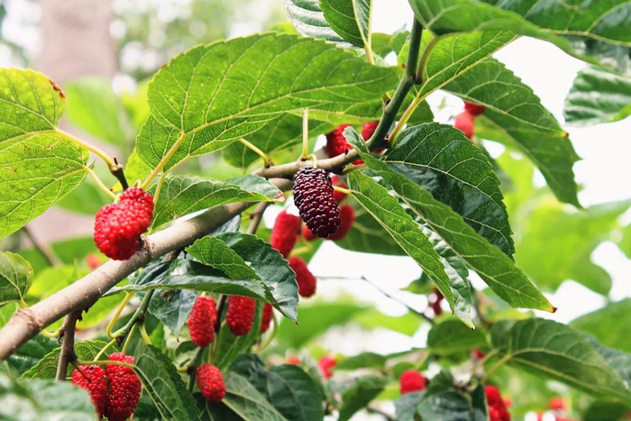 南浔的桑树桑果自然遍地都是。每年五月,可以前往南浔辑里村国丝文化园基地,偌大的桑果园任你品尝。在暖风阵阵的日子里,挎上篮子,穿行于桑田间,更是一种情趣。