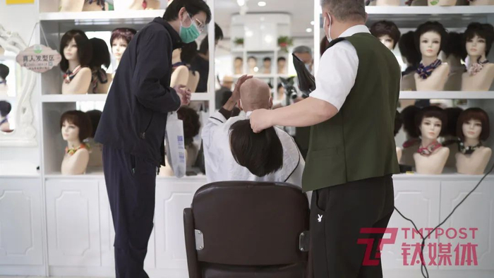 “很多人一进店里就大哭”,王峰告诉钛媒体影像《在线》,癌症患者通常会在第一次化疗后的2~3周开始脱发,不仅影响美观,脱发牵扯头皮也会带来巨大的生理痛苦。因此,很多患者不得不选择提前剃光头。