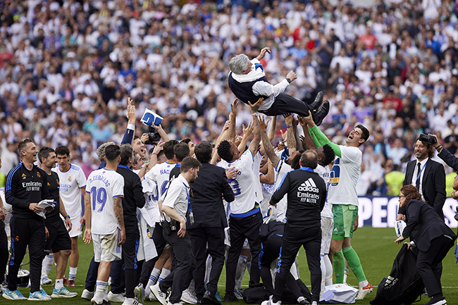 数据显示,安切洛蒂在执教米兰(2003-04)、切尔西(2009-10)、巴黎(2012-13)、拜仁(2016-17)时,安切洛蒂分别赢得了意甲、英超、法甲和德甲的冠军,现在,他补齐了最后一个板块,成为了足球历史上第一位在五大联赛都夺冠的大满贯教练。有媒体分析称,他的这个“第一”或许真的会是前无古人后无来者的纪录,因为在当下的足球环境中,已经没人能接近他的成就了。