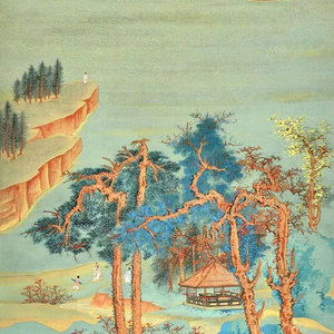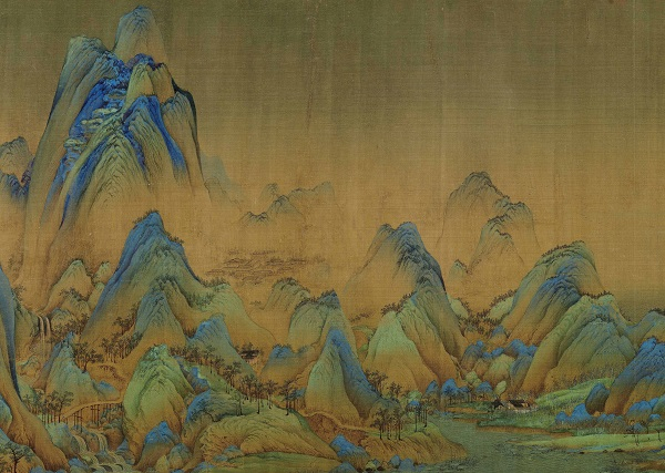 北宋末年,年仅18岁的王希孟完成了《千里江山图》,这是王希孟唯一传世画迹,笔墨继承隋唐以来青绿山水之表现手法,以大片石青、石绿为主色调,呈现千里江山、江河交错之景。楼台、渔村、桥梁、人物点缀其间,部分细小如豆,描写精细。全画布局严谨,意境壮阔,气势磅礡,咫尺具千里之趣,体现江山丰亨豫大之景象,复以富丽悦目之矿物颜料配之,色彩历千年仍苍翠夺目。