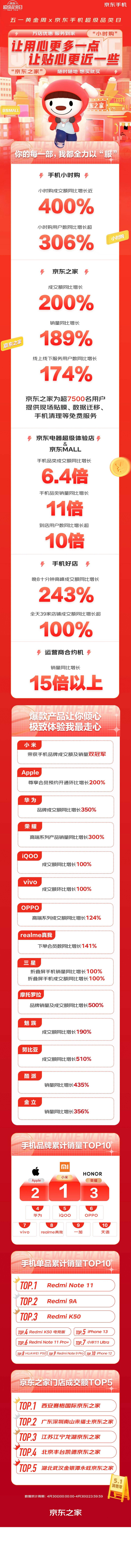 京东手机超级品类日活动,京东还上线了小时购分会场。大家只需点进京东APP首页的「附近」频道,选择附近 3-5 公里门店下单,或者在京东APP 内选购手机时,点击带有「小时购」标识的手机,足不出户,就可以在1小时内拿到新机。京东手机超级品类日战报显示,4月30日当天小时购成交额同比增长近400%、使用小时购的用户数同比增长超306%。