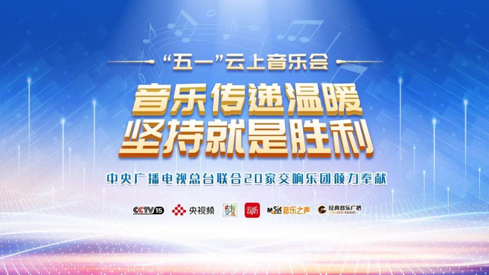 4月30日至5月4日,中央广播电视总台联合国内20家交响乐团连续5天推出《音乐传递温暖 坚持就是胜利—“五一”云上音乐会》。千余名演奏家共同演绎三十余首中外经典名曲,为抗击疫情中的人们传递温暖与祝福。