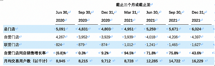 瑞幸自营门店数量差不多经历了一年的停滞,才自2021年3季度重新回到增长轨道。