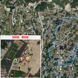 封控区:三凤一队一巷以南、三凤一队三巷以北、特维斯精选酒店西侧以东、三凤一队街以西区域;三凤二队二巷以南、三凤二队一巷以北、翔岐路以东、二队十二巷以西区域。