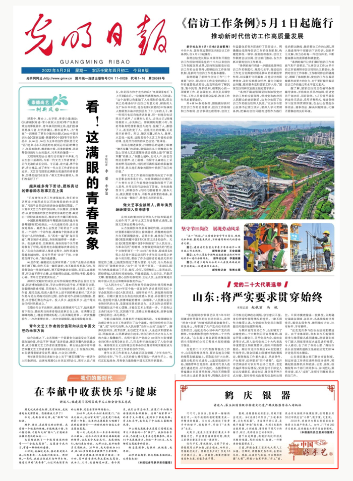 【关注】《光明日报》头版报道第五批国家级非物质文化遗产鹤庆银器传承人母炳林