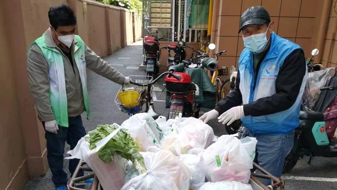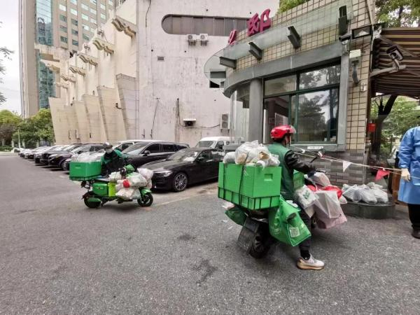 定向集单的方式也在一定程度上提高了站点处理订单的效率。4月28日上午,首批三个社区的近300单保供需求,在当天上午就集中完成了配送,并由物业将包裹集中消杀之后由志愿者统一配送到居民家中。截至5月1日,欧阳街道共有近2000户老旧小区居民通过叮咚买菜购买到了需要的商品。