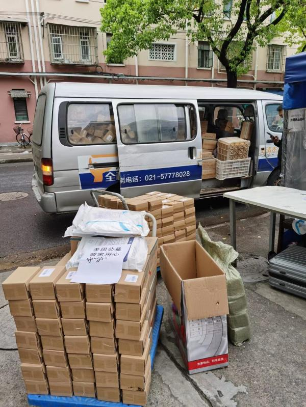 捐赠物资都采用无接触配送 (摄影 丁飞)