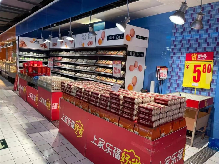 在蔬果、牛奶、肉禽蛋、调味品、饮料啤酒、休闲零食、纸等重点品类备货方面,线下复市门店提前预备2-3倍的量,保证库存充足,确保五一期间,能满足防范区内前来购物顾客的“一站式”购买需求。