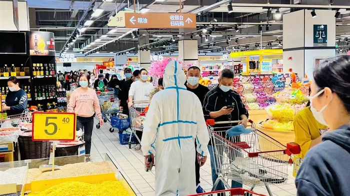 各个区域严格做好防疫安全管理,严格做好人流控制,保持2米线,顾客凭属地发放的通行证和48小时核酸报告,在扫描场所码及测温后进店采购。为避免门店客流聚集,门店会采取错峰限流、保持社交距离等措施,确保安全有序。按照世纪联华大卖场100-150人,联华超市10人分期分批入店购物。