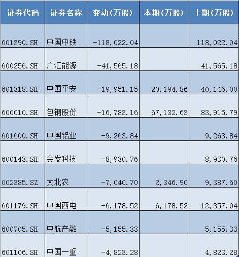 中国平安(601390)、包钢股份(600010)、大北农(002385)、中国西电(601179)等股票减持数量居前,分别减持了2.00亿股、1.68亿股、7040.70万股、6178.52万股。
