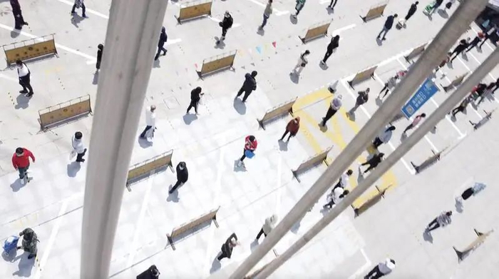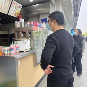 而在育秀路的奶茶店外,不少顾客都赶来购买“春天的第一杯奶茶”。巡逻人员看到后当即上前提醒“热情”的市民们别忘保持社交距离,有序排队购买。