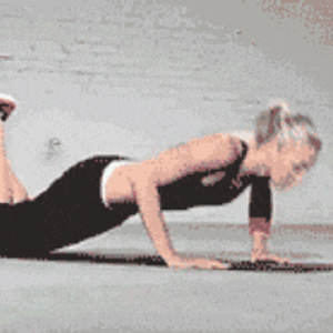 1.弯腰至双手撑地,双腿向后打开至自然伸直,从侧面看,耳肩髋膝踝在同一条直线;