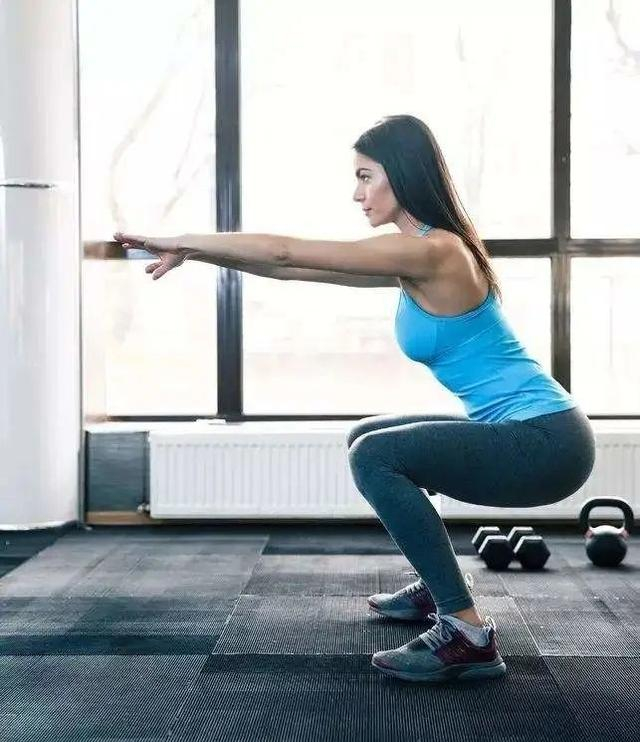 1.双脚打开,略大于肩宽,下蹲时,腰背保持挺直,髋膝联动弯曲至大腿与地面平行;起来时,至身体完全直立;