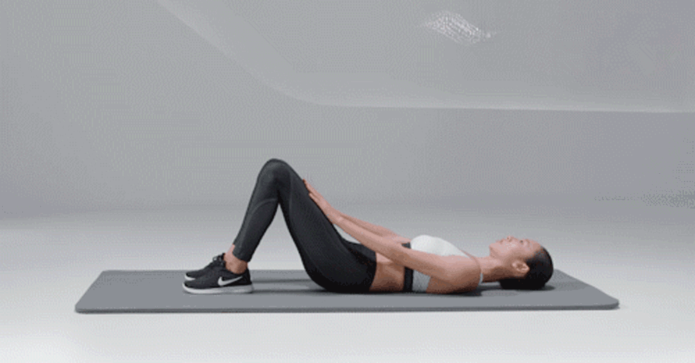 1.平躺屈膝,膝盖弯曲约60度,双腿微微分开;
