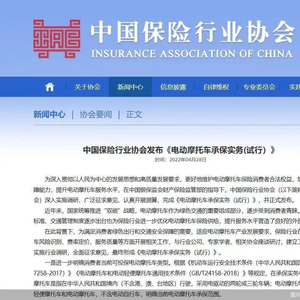 近日,中国保险行业协会发布消息称,为更好地维护电动摩托车保险消费者合法权益,增强保险保障能力,提升电动摩托车服务水平,在中国银保监会产保险监管部的指导下,保险业协会深入实施调研、广泛征求意见、认真开展测算,完成《电动摩托车承保实务(试行)》。承保实务在今日正式发布。