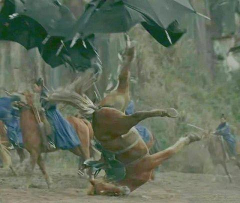 古装剧《且试天下》目前正在热播。在争议镜头中,一匹马在奔跑过程中向前摔倒,头和脖子先落地,身体因惯性向前折,与脖子几乎呈90度折叠。有网友担心,马会因脖子折断而亡。