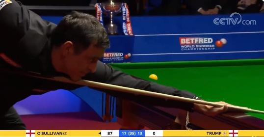 这是奥沙利文第八次打进世锦赛,历史上仅次于亨德利的九次。在以18-13击败特鲁姆普后,奥沙利文在克鲁斯堡第七度封王,追平此前由亨德利保持的历史纪录,两人并列成为世锦赛夺冠次数最多的球员。
