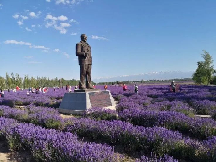 伫立在薰衣草观光园里的徐春棠塑像