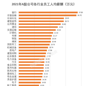 按照申万一级行业排序,银行、非银金融、石油石化、建筑装饰、公用事业、通信行业的人均薪酬位居前六。其中,银行和非银金融行业的员工人均薪酬分别达37.60万元和36.79万元,位居各行业前列。石油石化、建筑装饰、公用事业的人均薪酬超25万元,此外通信、交运、计算机、传媒、钢铁、煤炭这几个行业的人均薪酬均超过20万元。