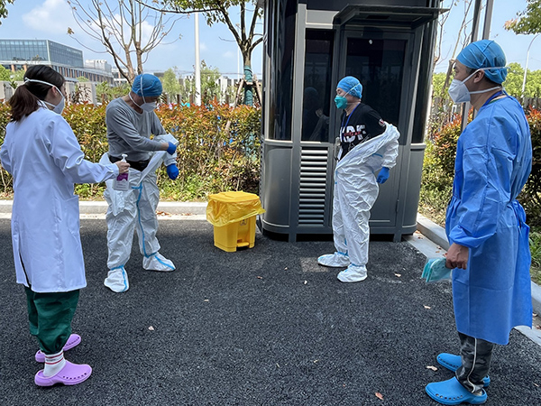 “考虑到入住人员都穿着防护服,穿脱极其不便,所以,通勤酒店提供的早餐尽量少发豆浆等液体,减少去卫生间的频率。酒店特别提供了便捷的核酸检测服务,入住人员每天一下楼可直接测完核酸,从专用封闭通道前往红区的定点医院工作。”胡菲说。