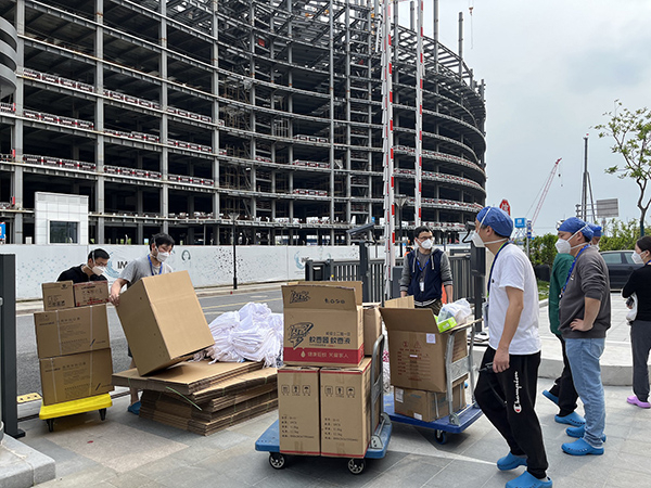 工作人员搬送物资