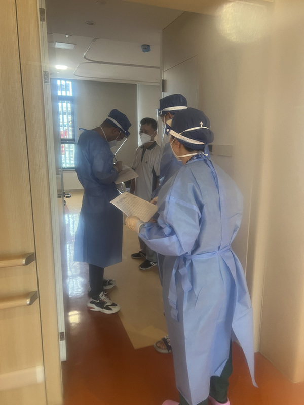 “我是4月17日夜里接到任务,作为院感组组长,负责黄区的院感防控工作,当日22时35分入驻现场。星晨大楼作为黄区,6-11楼可容纳228名工勤人员,外加40名工作人员,近300人的住宿,要确保这么多人零感染,我感到肩上的任务无比艰巨。”星晨儿童医院急诊科护士长胡菲说,黄区住宿人员大多是来自全国各地的保安、保洁、护工、电工、维修工、驾驶员、下水道工人等,管理最大的挑战,是要建立住宿者的规范防护意识与切断传播途径。
