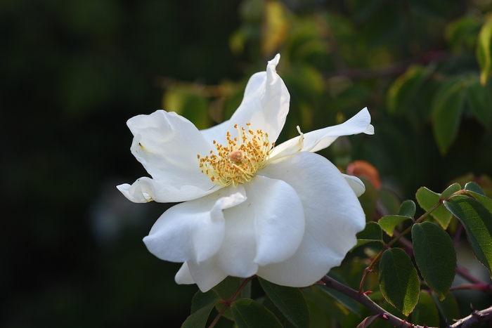 跟悬钩子蔷薇很相似的川滇蔷薇,我国有多种白色单瓣的野生蔷薇。摄于四川金川。 周敏