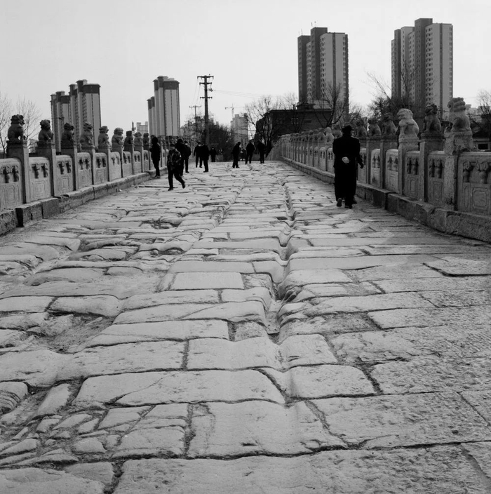 李福朝介绍说,在修缮过程中,施工人员将整个桥面原有的沥青路面剥离后,原始桥面的石板和深深的车辙完整显现,水泥中孔正上方约20米长的桥面没有原始石板。施工人员将水泥中孔上方桥面原有的灰渣、三合土全部清理干净,重新夯一层三合土,再铺上沙子以及新石板、少部分可利用老石材。新石板同老石材一样,都出自河北邯郸、邢台山区。