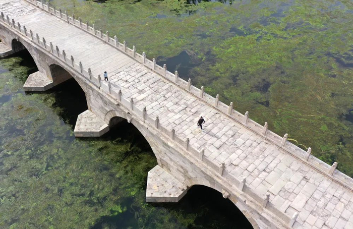 图为完成修缮的衡水安济桥对行人恢复开放(无人机照片)。新华社发(陈康摄)