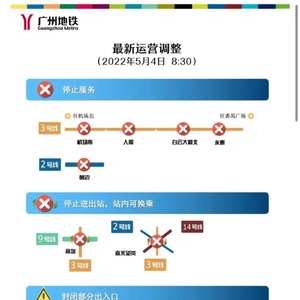 自5月4日8:30起,三号线永泰站停止对外服务,二、三及十四号线嘉禾望岗站停止进出站服务,仅保留站内换乘功能。